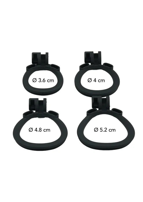 Tweedelig Systeem voor Veiligheid: De kooi bestaat uit twee essentiële onderdelen: de basisring die comfortabel achter het scrotum en rond de penisbasis zit, en de korte buis/kooi die de schacht omsluit. De twee delen worden vergrendeld (meestal met een hangslotje of een kunststof veiligheidszegel), waardoor de testikels in de opening vastzitten en de kooi niet kan worden verwijderd zonder de sleutel van de Keyholder.